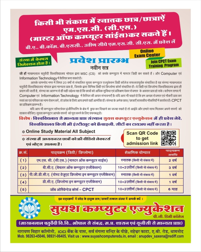The institution established in year 2000 is affiliated to Makhanlal Chaturvedi National University of Journalism & Communication, Bhopal ( set up Act no.15, 1990 of M.P. Legislative Assembly M.P. Govt. of India , UGC, AIU, AICTE ).